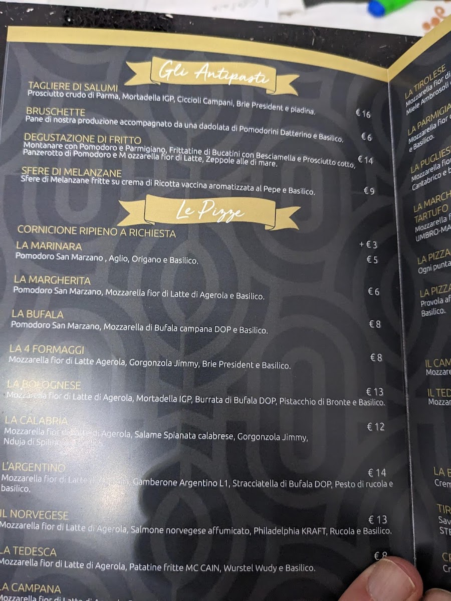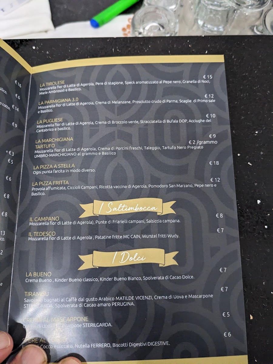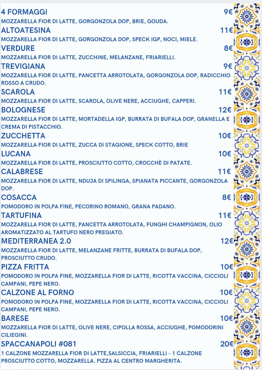 Grani Antichi Pizzeria Napoletana offers a diverse and delicious menu that caters to various tastes, starting with its pizza selection. You can indulge in classic options like the Diavola, with its spicy kick, or the Pizza Fritta, a deep-fried delight. For something lighter, try the Schiacciata Con Sale E Olio EVO Trevigiana, or the hearty Panuozzo. To accompany your meal, the drink menu includes refreshing options such as Coca-Cola Zero (33cl), Peroni Doppio Malto (33cl OFFERTA), and Fanta Lattina (330ml). The Le Fritture section is perfect for those craving a savory snack, offering choices like a single Frittatina Di Bucatini, a delicious Montanara Al Pomodoro, and various box options such as the MINI Box Fritti Mix (4 pieces) and the larger MAXI Box Fritti Mix (8 pieces). For dessert, the La Pizza Alla Nutella provides a sweet end to the meal, alongside traditional treats like the Baba' Con Crema Chantilly, Ricotta E Pera Pastiera Artigianale, and a rich selection of classic desserts. The menu offers a great balance of savory and sweet, with a focus on quality ingredients and authentic flavors.